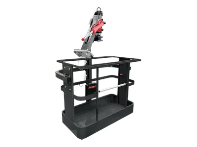 La cesta de personal AGLY SKYLER, fabricada en acero, es ideal para dos operarios. Diseñada para combinar la eficiencia de trabajo de la gama Skyler con la rentabilidad de la gama Agly, conserva las características principales de ambas. Está equipada con un cilindro estabilizador para movimientos más suaves, una caja de cambios manual o eléctrica opcional que permite la rotación, una puerta de entrada de cierre por gravedad, adhesivos reflectantes básicos en la parte inferior y lateral de la cesta, una funda para documentos y un portaherramientas de aluminio. Su brazo de sujeción se diferencia del resto de modelos de la gama en que rodea la cesta a lo largo de toda su longitud y cuenta con una columna extensible situada en el centro, regulable en altura de forma manual, que permite alcanzar aproximadamente 2 metros desde el suelo de la plataforma.
